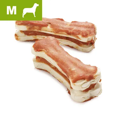 Lukullus Dog Bones are a real treat for gourmet dogs! Tasty chicken and pressed rawhide combined in a sandwich bone. A low-fat, natural dog chew free from preservatives and colourings.